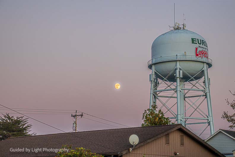 Bonus shot! The nearly full moon rising next to the Eureka water tower, taken that evening.