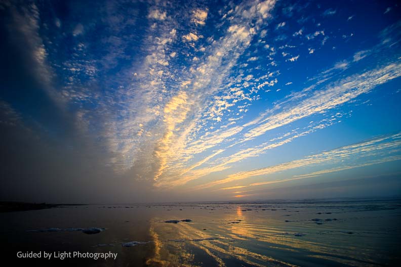 The sky looking back east was equally stunning, with sweeping arcs of clouds illuminated in pink light